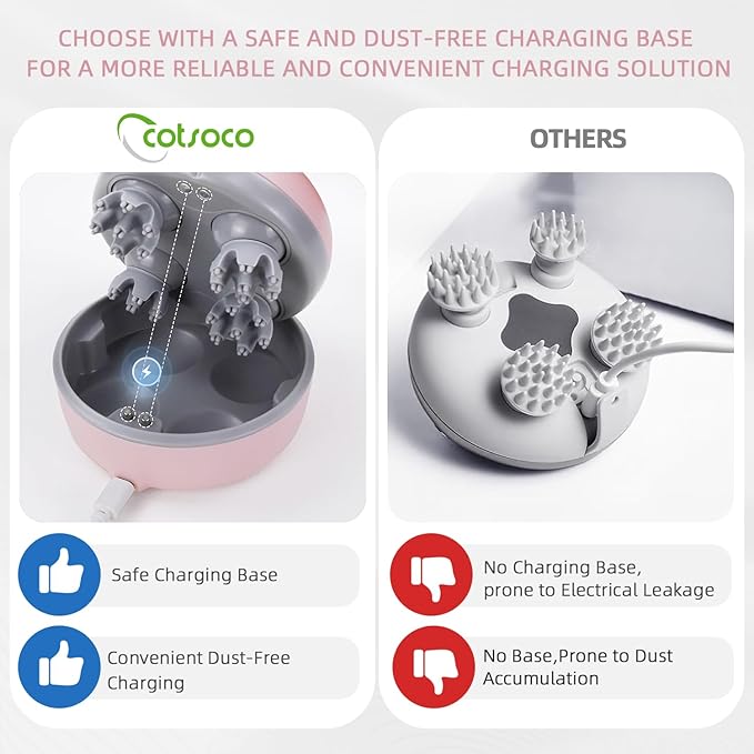 cotsoco Electric Scalp Head Massager, Scalp Hair Massage Waterproof Head Massager with 4 Heads 84 Nodes for Hair Growth and Stress Release Massage Pink