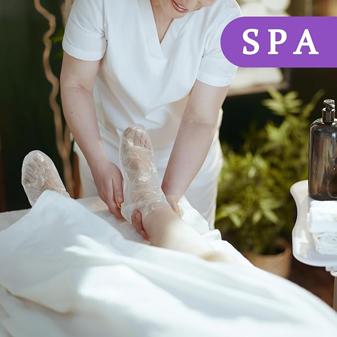 - Wide Application - The disposable foot liner is easy to use suitable for many purposes, not limited to time and place. Plastic pedicure socks can be used in Paraffin Baths,spas, home beauty salons and wax heat packs. The disposable foot sleeve is very helpful for wax soft feet treatments and can be used to relieve pain from arthritis. All you need to do is dip your foot into the wax container, remove it after a few seconds and repeat the operation