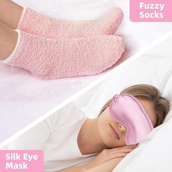 - Pamper Her with a Touch of Luxury: Our self care spa gift set pampers her from head to toe with a premium silk eye mask for restful sleep, luscious bath salts for a fragrant soak, a captivating diamond bar soap, soothing bath bomb, a scented candle for ambiance, and fuzzy socks for comfort. It's an all-encompassing luxury experience.