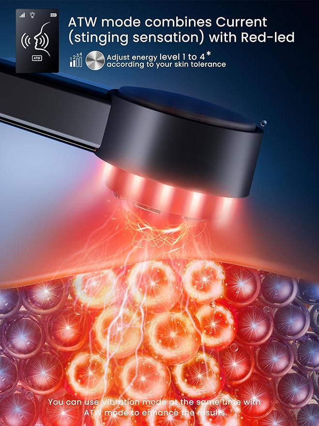 - Smart Modes for Targeted Results: ATW MODE: Red light + Current-(stinging sensation) boost collagen, anti wrinkle. IAP MODE: RF(slightly warmth) + Current-stimulates-collagen produce, fade wrinkles(more of a stinging sensation than warmth). TS MODE: Pure-current sculpts-jawline. Cooling/ Heating MODE: Soothe and reduce puffiness/increase absorption. Please flip to the matte-finish back panel for instant cooling/heating)