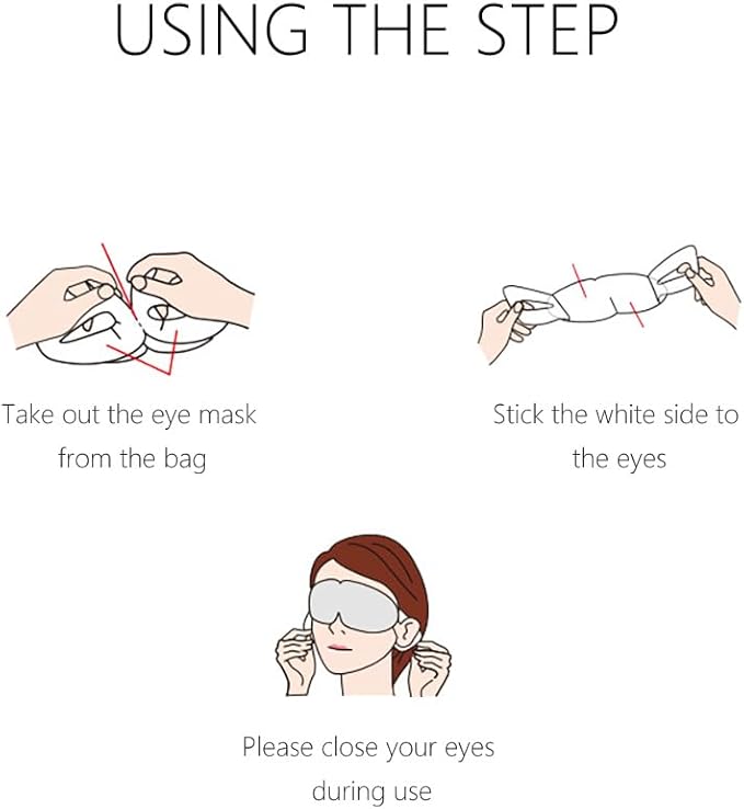 - Self Heating Eye Mask: activates upon opening the packaging and requires no further preparation or heating. Simply place the mask over your closed eyes, adjust for comfort, and enjoy the warm sensation and aromatic effects.
