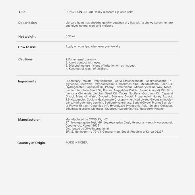 SUNGBOON EDITOR Honey Blossom Lip Care Balm