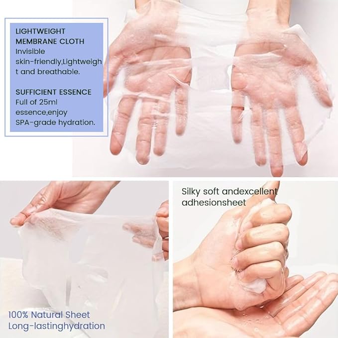 - FACIAL SKINCARE SHEET MASK:This premium women's skin care mask is silky smooth,moisturizing,refreshing and has increased efficacy and adhesion to block evaporation and lock in moisture for a hydrating effect that lasts all day