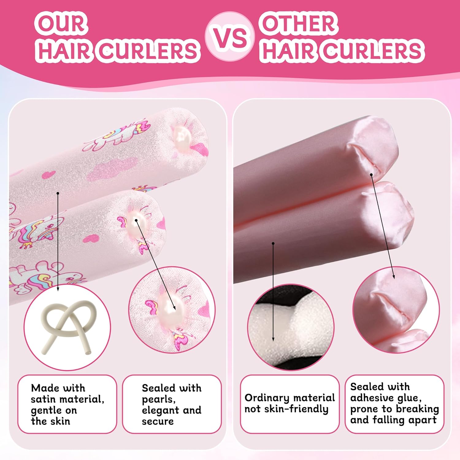 Girls Heatless Curls Overnight, Kids Unicorn Hair Rollers with Hair Clips, Hair Accessories for Little Girls & Teenage & Sister, Birthday Gifts Trendy Stuff - Pink