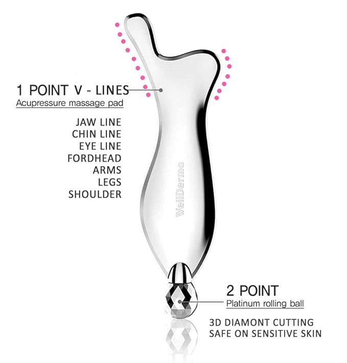 WELLDERMA 2 in 1 Gua Sha & face Roller Metal Tool & Collagen mask Set