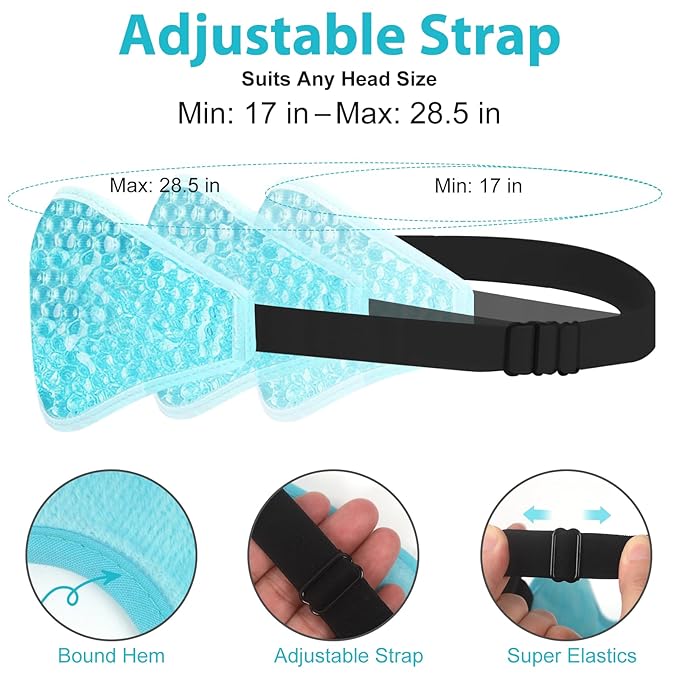 - 【Adjustable Soft Elastic Strap, Comfortable & Suits Any Head Size】BeeVines XL ice eye mask for puffy eyes features a soft, adjustable elastic head strap that does not move or fall off while you are using the gel eye mask. The elastic strap of this cooling eye mask is better as it never messes your hair & is more durable as a Velcro always tangles your hair. Our frozen cold compress pack for puffiness is perfectly fit any head shape & size (18 in to 28.5 in) and suit both adults & kids.