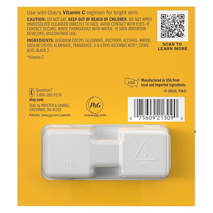 Olay Cleansing Melts + Vitamin C Face Cleanser, 12ct, Water-Activated Face Wash Cleans, Tones, and Refreshes Skin