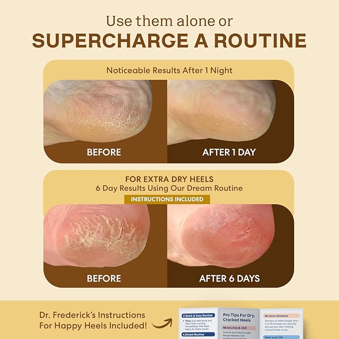 - Visible Results Fast: Dr. Frederick’s Original Fuzzy Heel Socks are expertly developed to transform dry, rough feet into soft, smooth soles. Most users see a difference after just one night, with best results achieved after one week of consistent use.