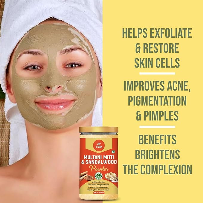 D'SUZA Fuller's Earth Powder, 11 Oz, 0.66 lb, Indian Healing Clay, Bentonite Clay, Natural Face Pack (11 Oz, Multani Mitti & Sandalwood Powder)