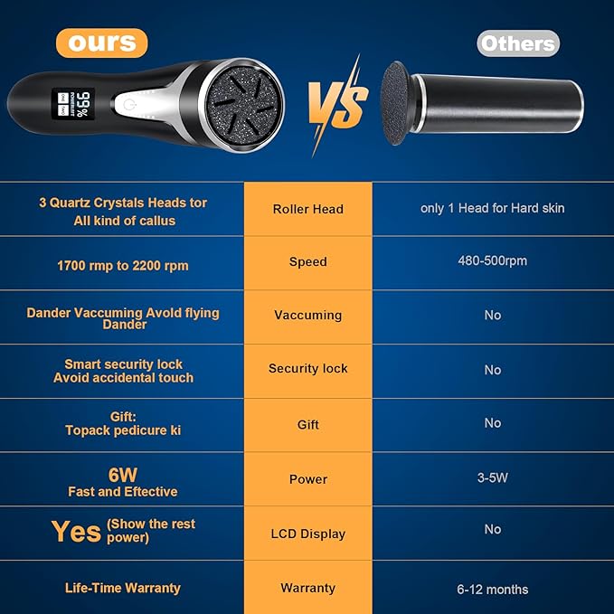 - Multiple Accessories: Comes with a variety of care foot callus removing accessories to make your use more comfortable and make customer's skin as smooth as a baby.