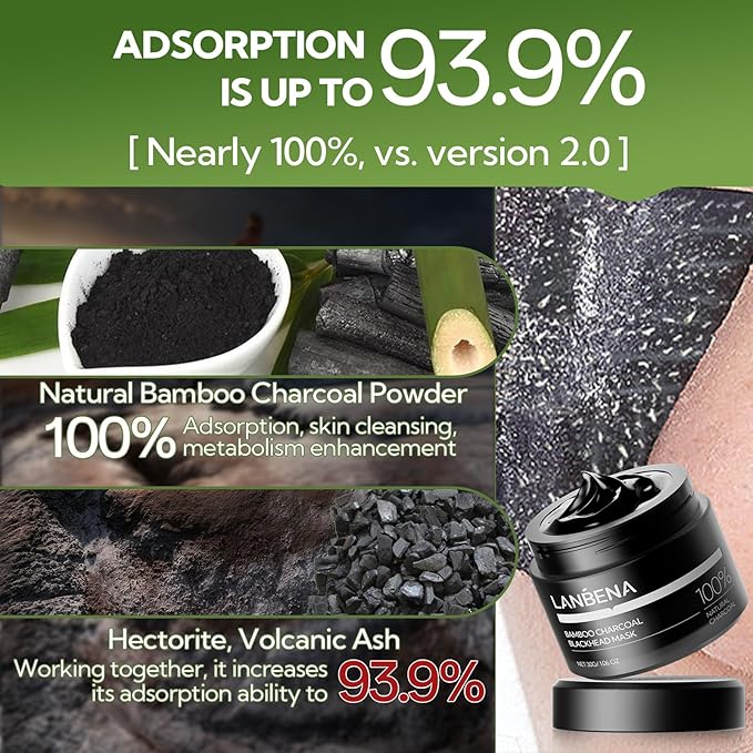 - 【LANBENA Upgraded Blackhead Mask Kit】- 2% Salicylic Acid Pore Strips 2.0 + Bamboo Charcoal Blackhead Mask 3.0, its increased adsorption ability, shorter time to get rid of blackheads, upgraded packaging, added mask brush and more.