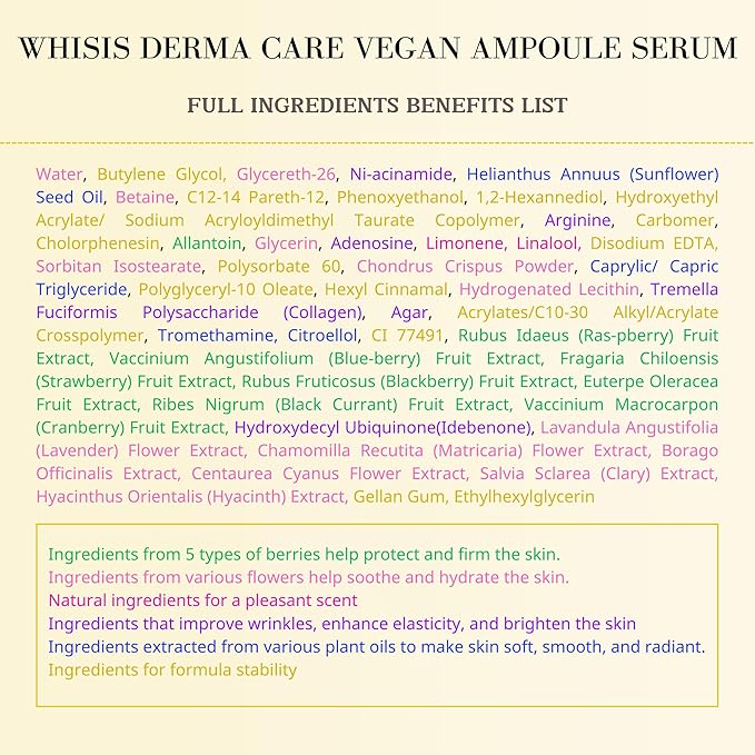- WHISIS VEGAN AMPOULE SERUM extracted from Snow Mushroom and infused with Idebenone and Liposome Technology, delivers intense hydration and powerful anti-aging effects, leaving your skin radiant and healthy.