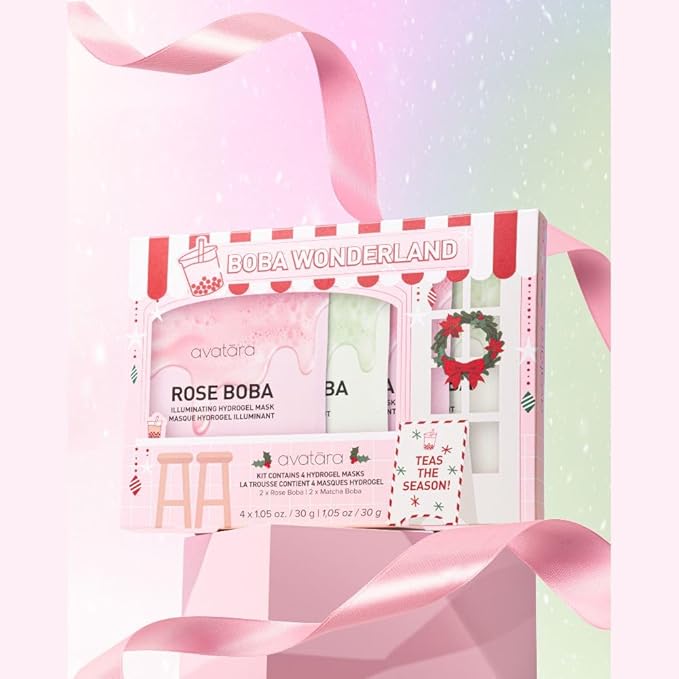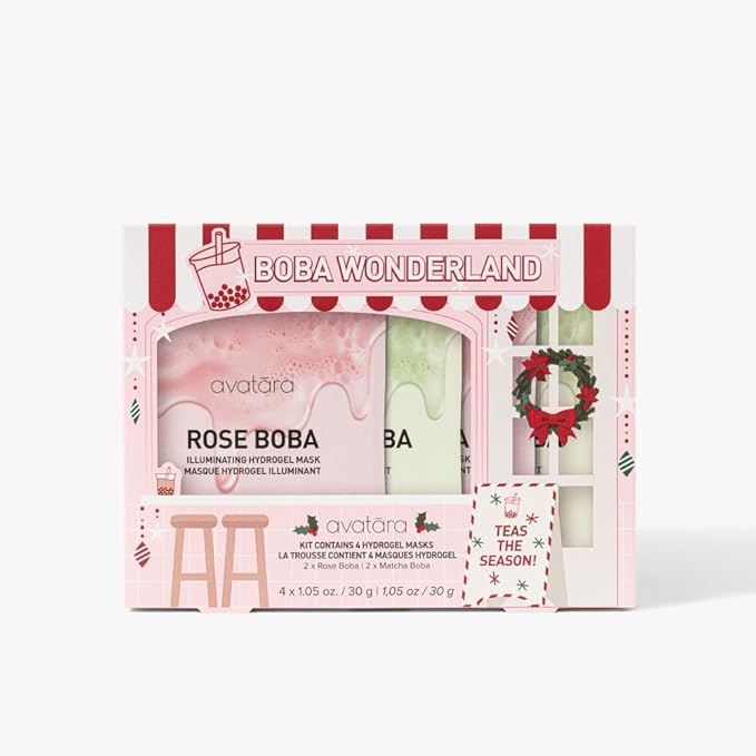 - This set contains: (2) Rose Boba Illuminating Hydrogel Masks Combines gentle brightening botanicals & nourishing moisturizers to boost radiance for a healthy, dewy glow. Infused with Damask Rose, Provence Rose & Niacinamide - 2x 1.05 oz. / 30 g.