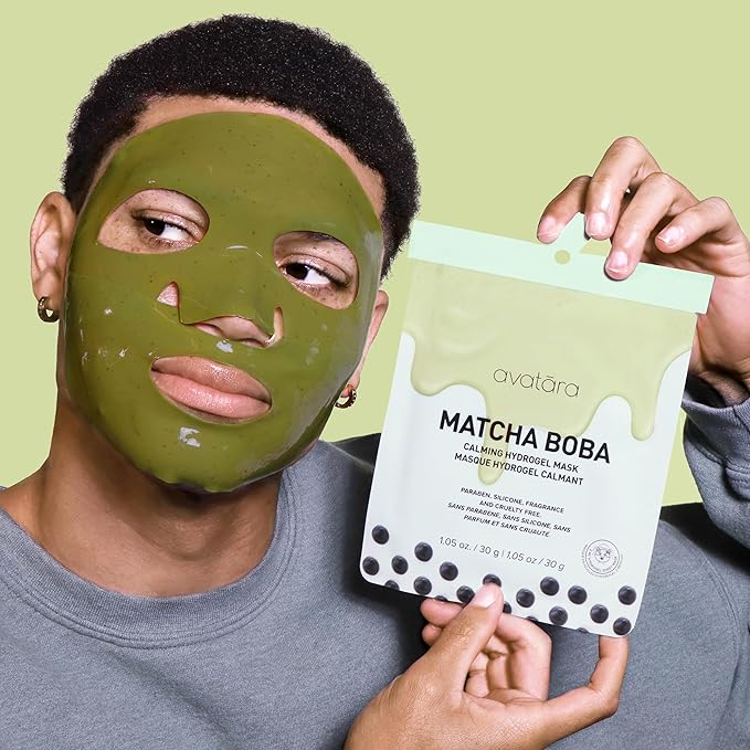 - This set contains: (2) Matcha Boba Calming Hydrogel Masks Combines calming antioxidants & nourishing moisturizers to balance skin for the ultimate healthy glow. Infused with Matcha, Ceramides & Probiotics - 2x 1.05 oz. / 30 g.