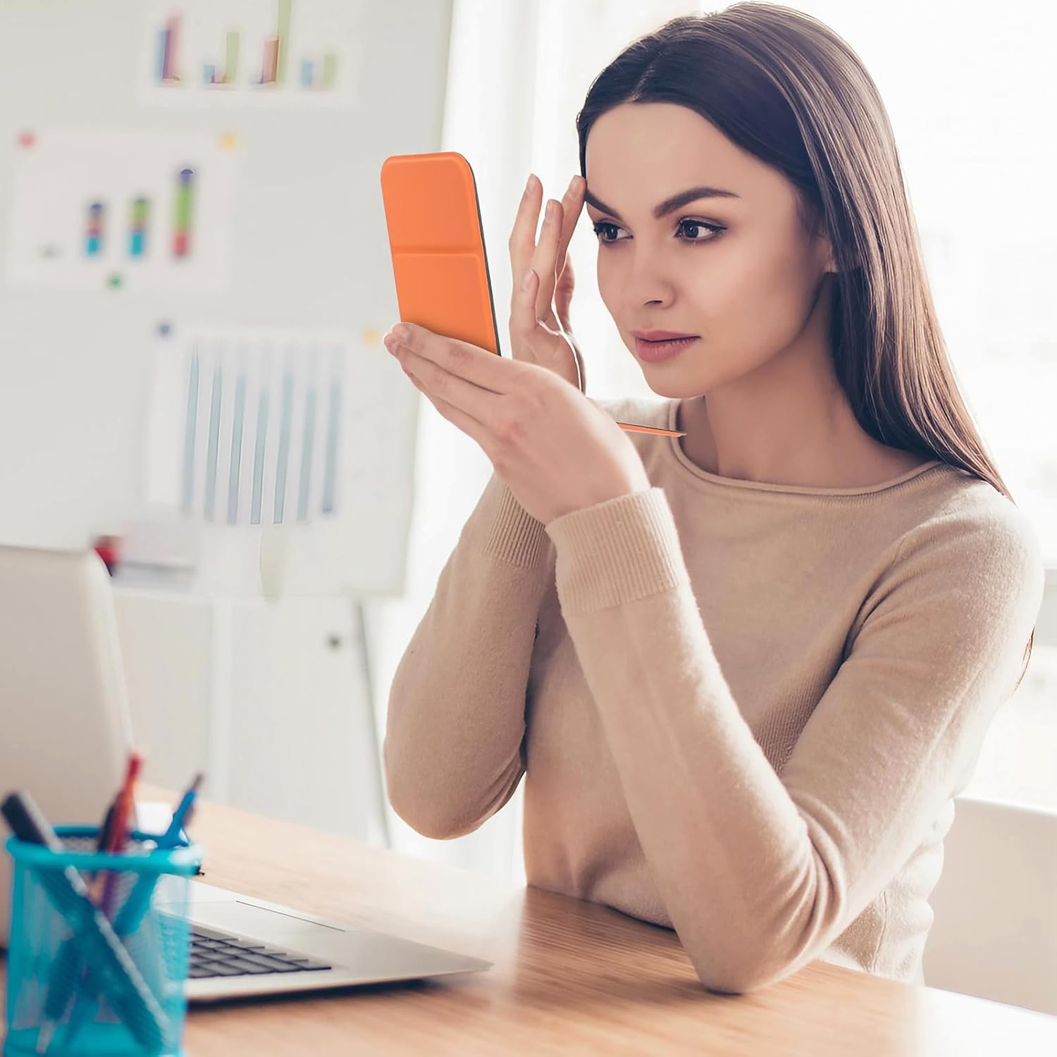 Hand Mirror,Ultrathin Ultralight, Portable, Folding, Handheld, Compact Travel Mirror for Camping,Home,Office,Small Mirror for Pocket and Purse,Good for Gift (Orange)