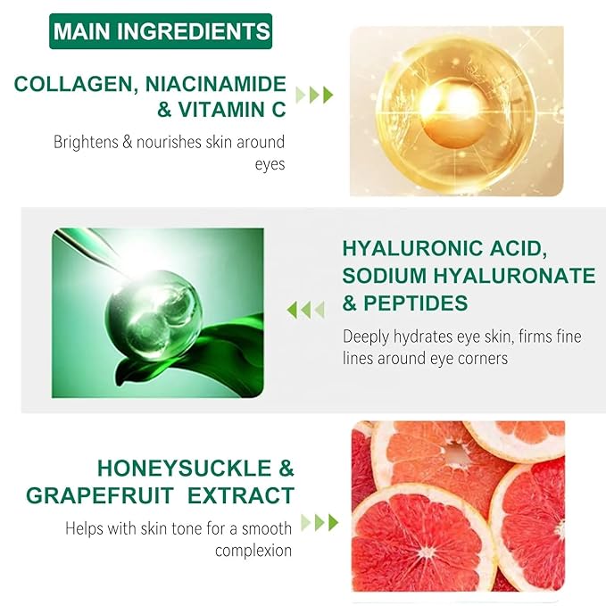 - Deep Hydration with Hyaluronic Acid: Infused with hyaluronic acid to deeply moisturize and plump the under-eye area, reducing the appearance of fine lines and wrinkles.