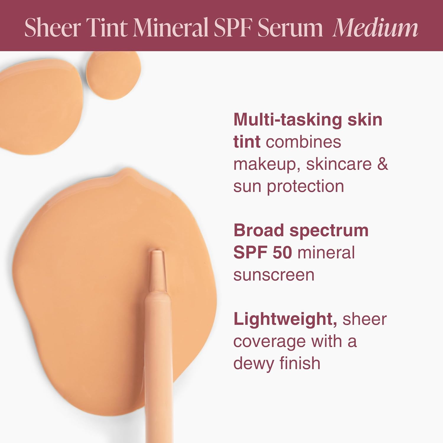 Mineral Fusion Face Serum, Sheer Tint Mineral SPF Serum, 1 Fl Oz, Medium, Tinted Broad Spectrum SPF 50 Mineral Sunscreen, Sheer Coverage, Lightweight & Dewy Finish for Glowing, Protected Skin