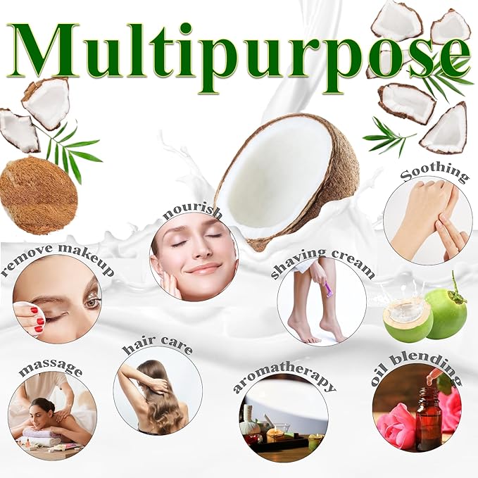 - 100% Pure Natural Fractionated Coconut Oil: a versatile base oil that remains liquid at all temperatures and is easy to mix with other oils. Suitable for aromatherapy, essential oil blending, massage, and can also be used as a moisturizer for hair and skin. Pure coconut oil does not contain hexane, nipagin esters, or sulfates, and is 100% natural.