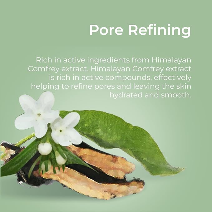 - Pore Refining: Rich in active ingredients from Himalayan Comfrey extract. Himalayan Comfrey extract is rich in active compounds, effectively helping to refine pores and leaving the skin hydrated and smooth.