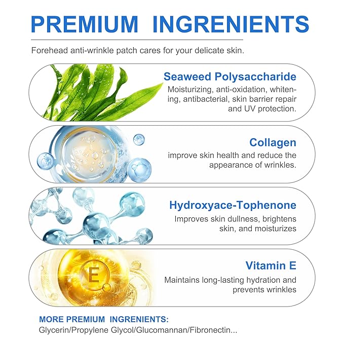 - [Forehead wrinkle patches]:Experience smoother, healthier looking skin with our forehead patches.With factors such as excessive sun exposure, aging, lack of moisture, and incorrect wrinkle habits contributing to forehead wrinkles. Our anti-wrinkle patches can help you say goodbye to wrinkle troubles.