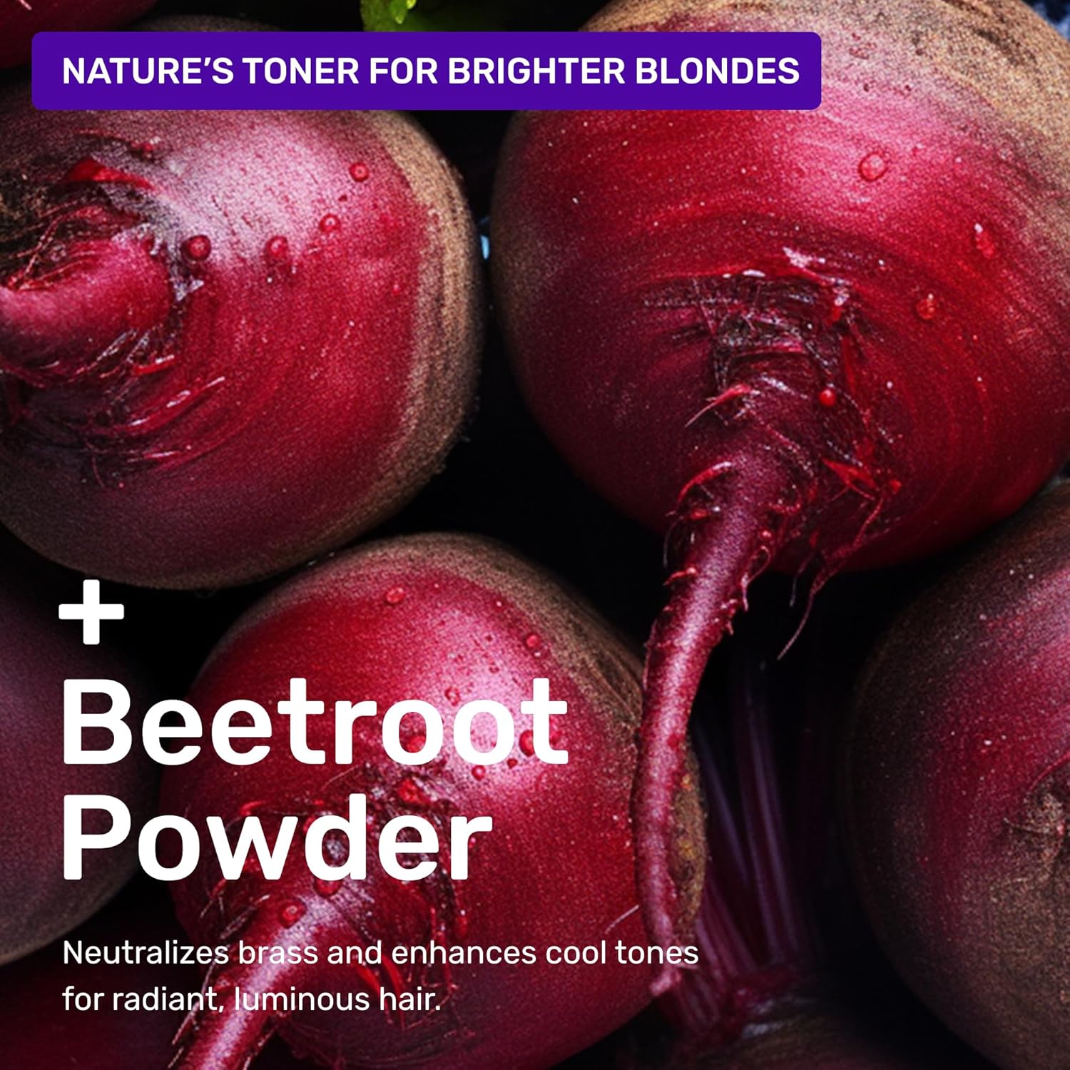 - TONE YOUR TRESSES: Banish brassiness and keep blonde or grey hair looking its best! Our Purple Shampoo Bar neutralizes yellow hues, leaving your locks looking fresh and radiant. Infused with babassu oil to strengthen, beetroot powder to soften, and betaine to nourish, it’s your go-to for healthy, beautiful hair.