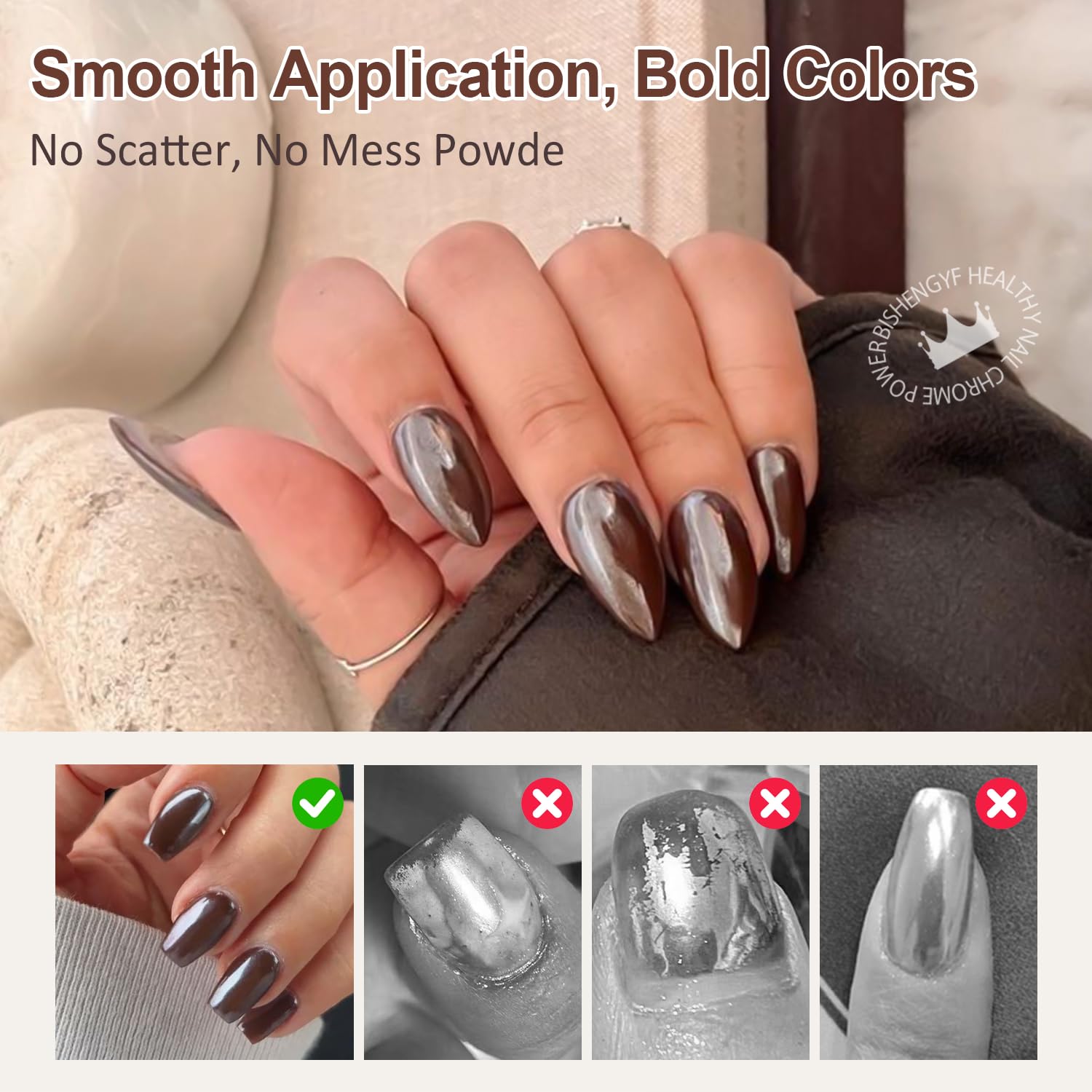 - Mirror Effect: BISHENGYF unique mirror effect chrome nail powder design of the pink glitter series white chrome nail powder can not only significantly enhance the sense of fashion and individuality of nail art,but also bronze chrome nail powder add a touch of unparalleled glamour and fun to your overall look.