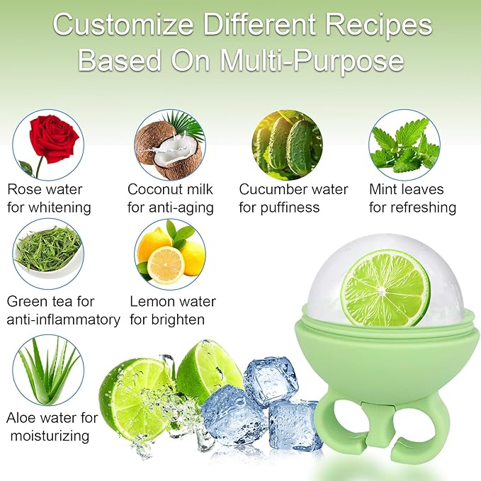 - Unique Finger Ring and Suction Cup Design: Different from the traditional ice roller, our ice face mold has a unique design. Hand ring design: protects your fingers from frostbite while in use, which is more ergonomic. The bottom suction cup design: the facial ice roller is placed more smoothly, which can prevent the face ice roller from being accidentally touched and tipping over causing water leakage.