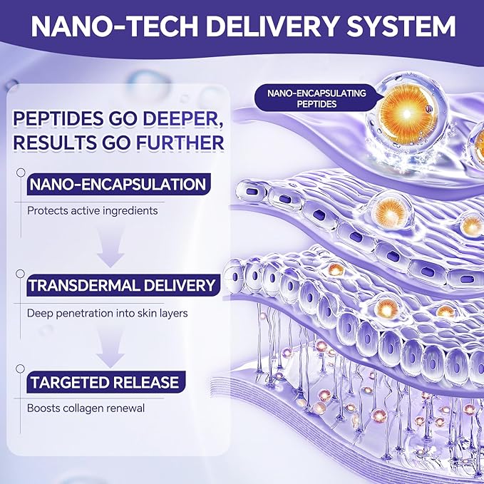 - Advanced Multi-Peptide Serum: Features a cell-membrane-like polymer structure, micro-encapsulating peptides with transdermal technology provides controlled release, allow facial serum to penetrate multiple layers to combat dehydration & dull skin.