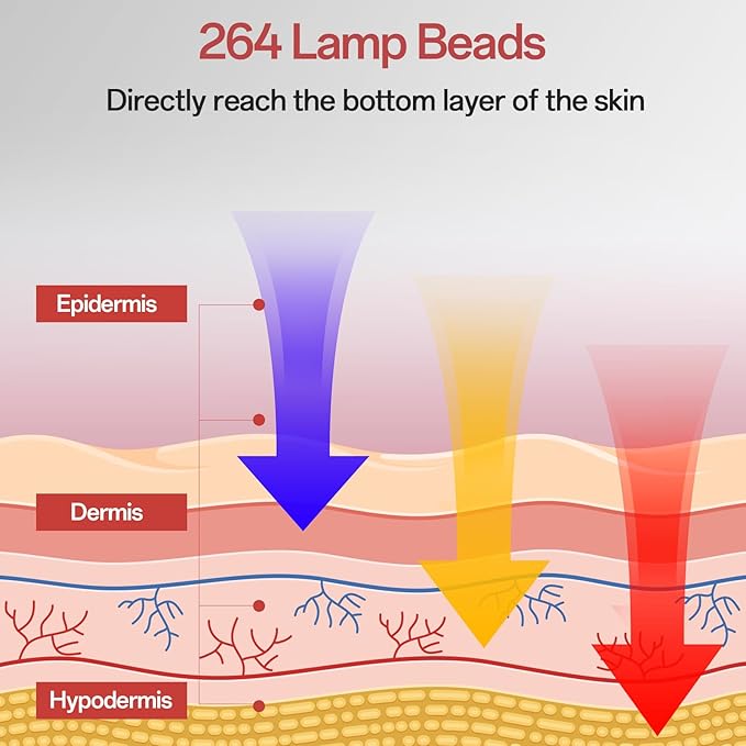 - 264 Light Beads: Equipped with 264 high-quality light beads arranged in 66 slots (4 beads per slot), this mask ensures even and effective light distribution for optimal skincare results.