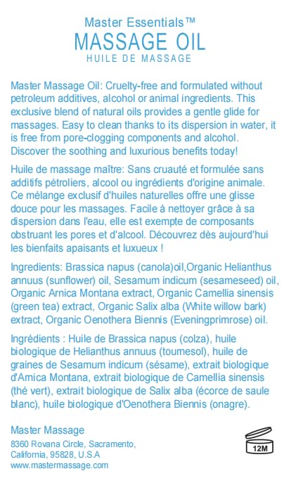 Master Massage Unscented Organic Massage Oil - Water-Soluble, Vitamin-Rich, Skin-Nourishing Formula, Ideal for Professionals and Home Use, 1-Gallon Bottle, Pack of 1