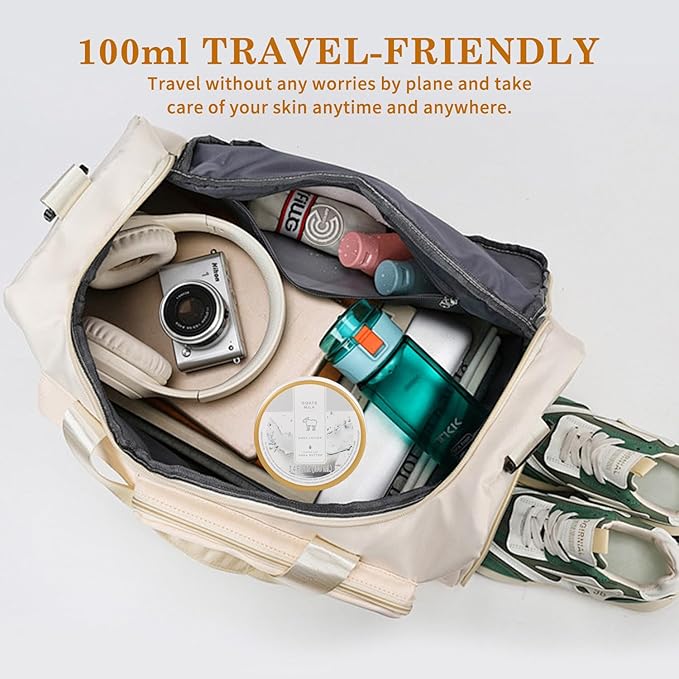 - TRAVEL-FRIENDLY: This Goat Milk Body Lotion is designed for travel convenience. It has a capacity of 100ml and is small and exquisite, making it easy to carry in a bag or suitcase. You can travel without the burden of flying and take care of your skin at any time. It is a considerate travel companion.