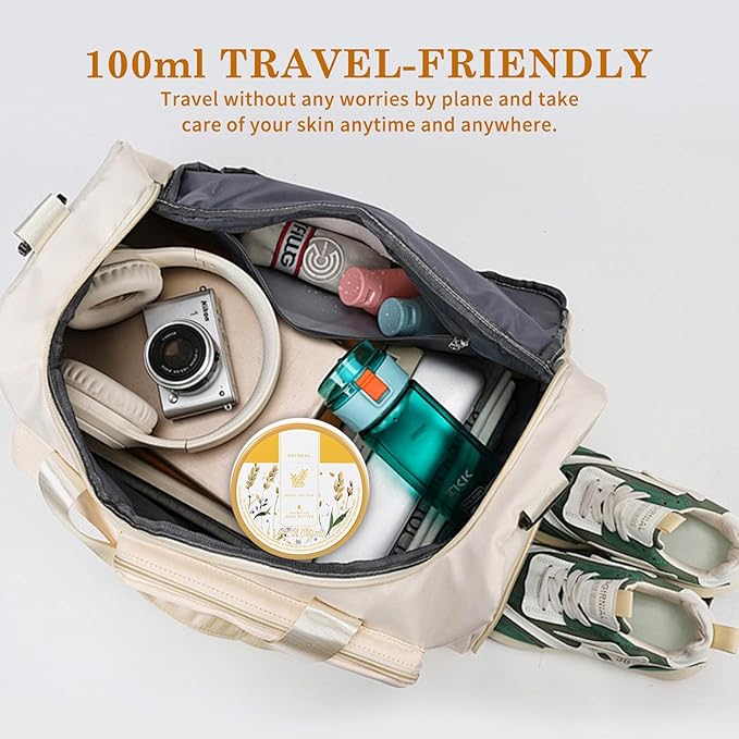 - TRAVEL-FRIENDLY: This Oatmeal Body Lotion is designed for travel convenience. It has a capacity of 100ml and is small and exquisite, making it easy to carry in a bag or suitcase. You can travel without the burden of flying and take care of your skin at any time. It is a considerate travel companion.