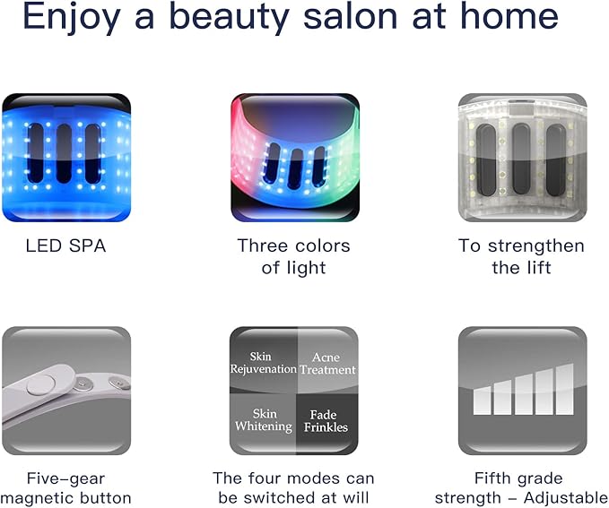 - Intelligent and widely applicable - ergonomically designed to perfectly fit the neck contour, suitable for all necks, with adjustable headband length. This instrument alternately uses three different intensities of light to make the skin glow and effectively lift the neck.