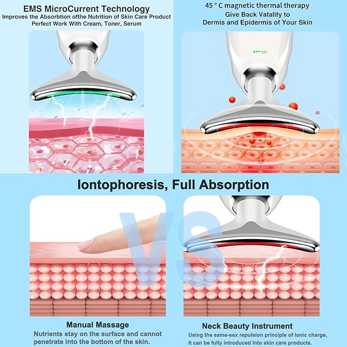- 3 Powerful Modes and Ergonomic Design: Face and Neck Massager has 3 Massage modes that vibrate and equalize heat. Adjustable mode to meet your various needs. The gentle massaging action also aids in the absorption of skincare products, allowing them to penetrate deeper into the skin for better efficacy. Streamline design fit for ergonomic theory, face or neck