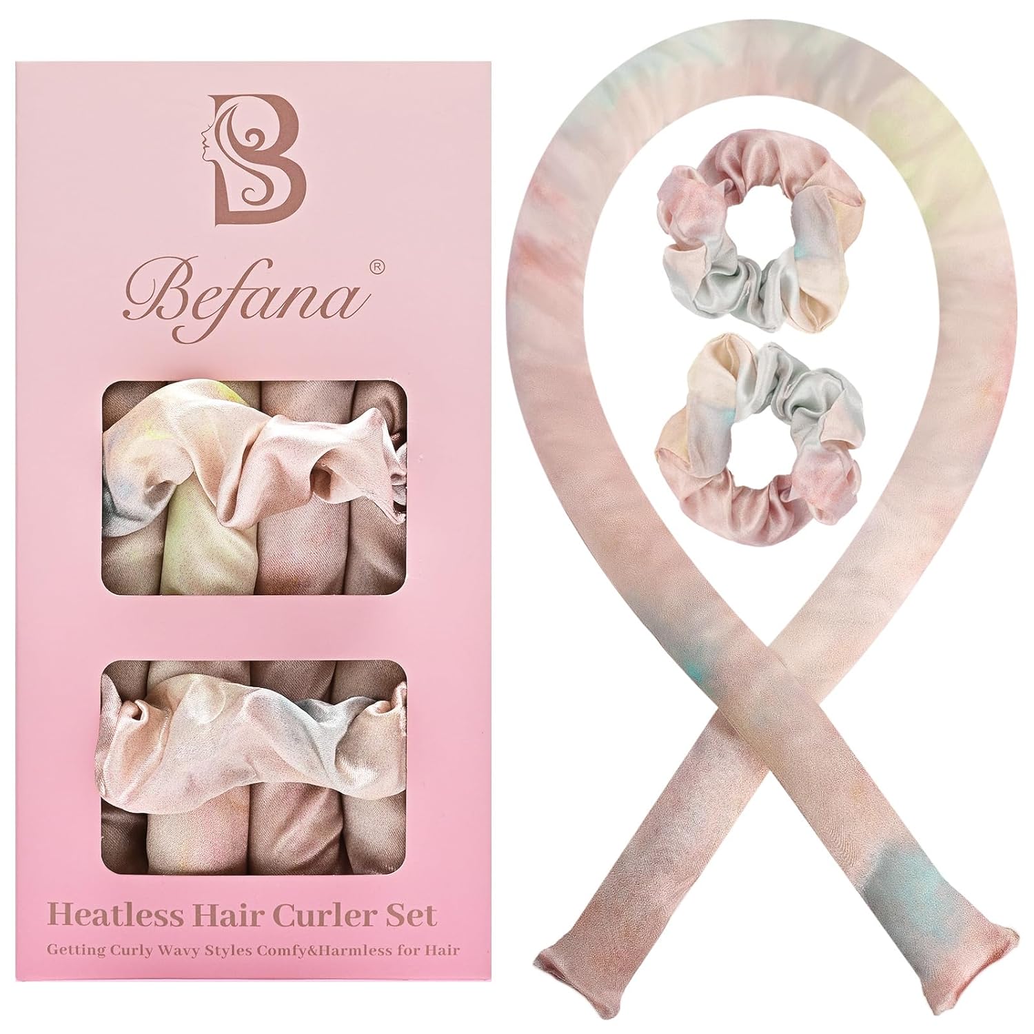 - This no-heat curling headband set includes a curling rod and two satin sleep scrunchies, all covered in high-quality satin fabric.