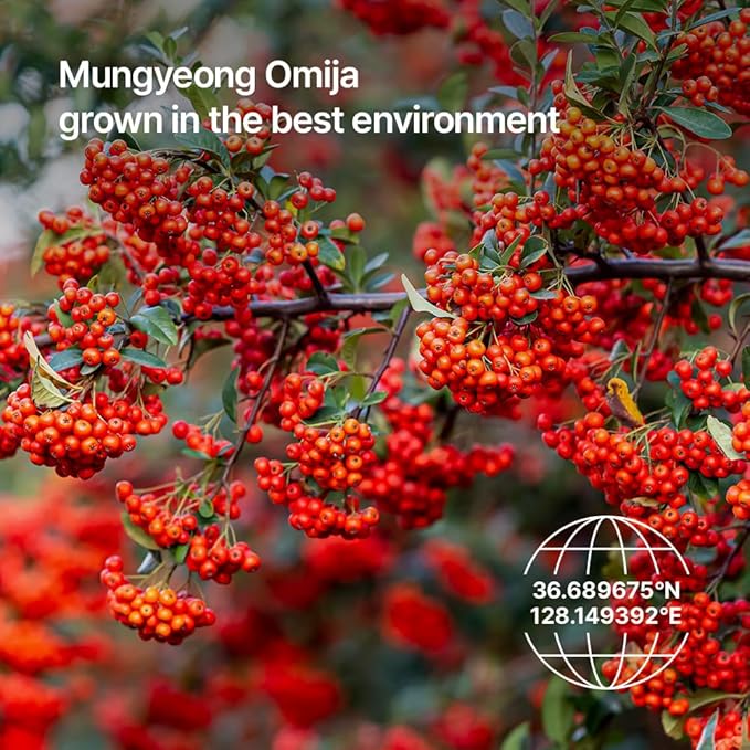 - Grown in an optimal environment, Mungyeong's Omija : contains abundant minerals and amino acids, making dull, dry skin clearer and more moisturized.