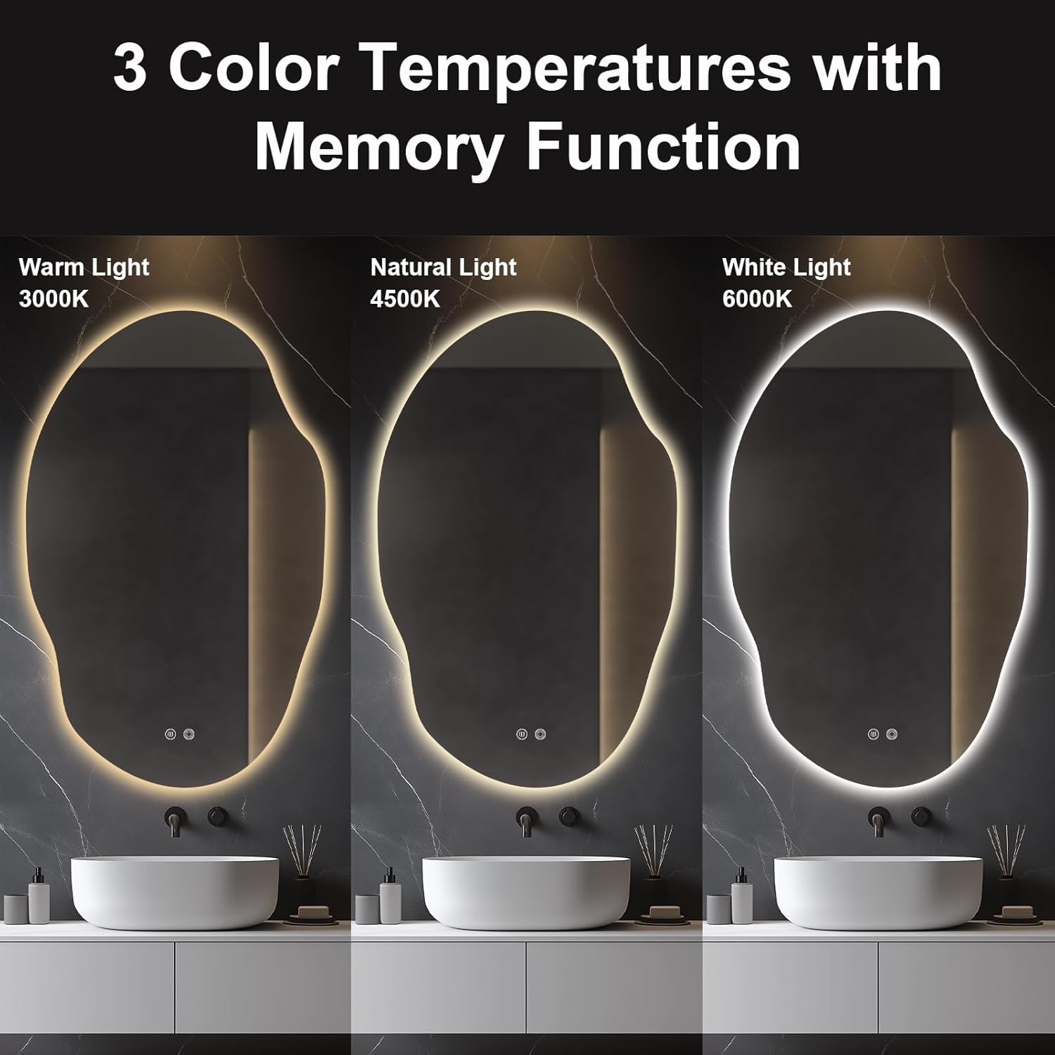 Asymmetrical LED Bathroom Mirror with Lights,Irregular Led Bathroom Vanity Mirror for Wall with Front and Backlit, Anti Fog, 3 Colors and Dimmable Light,[Horizontal/Vertical] 48" H x 30" W