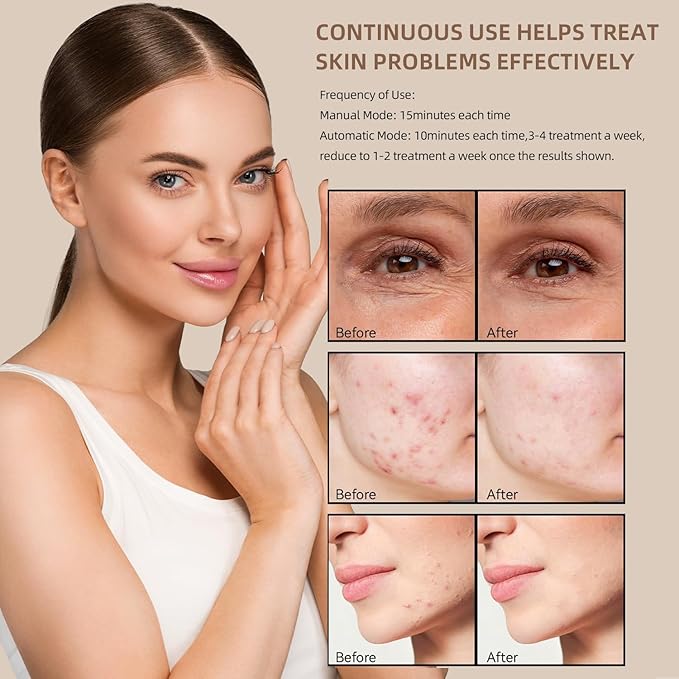 - Customizable Treatment Programs:Opt for our 4-color LED setting to tailor your skincare regimen for optimal results. We recommend that you use Manual Mode: 15 minutes each time, Automatic Mode: 10 minutes each time. 3-4 treatment a week, reduce to 1-2 treatment a week once the results shown. to meet the unique needs of your skin. Achieve your desired outcomes by selecting the light energy that best aligns with your skincare objectives.