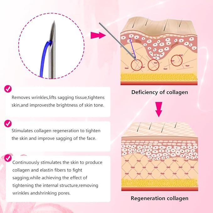 - 💖Smooth wrinkles and improve: Skin quality pdo threads mono are inserted into the skin in a mesh pattern to help increase skin firmness. The principle is to induce the production of collagen through thin filaments inserted into the skin. Single threads can be used to improve skin texture and quality in the lower cheek and perioral areas.