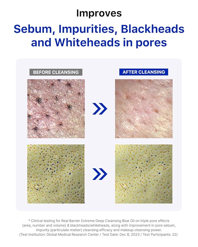 Real Barrier Extreme Deep Cleansing Blue Oil 6.76 Fl Oz, Removes Makeup, Sebum & Blackheads, Hydrating & Gentle on Skin, Low-Irritation Pore Cleansing, Korean Skincare
