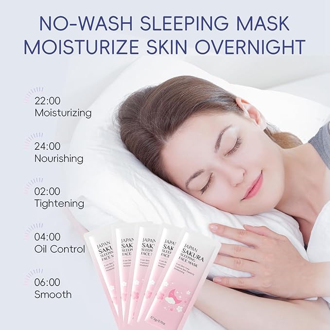 - 【Moisturizing Gift Set】Teenage girls gifts sakura skin care set contains cherry blossom extract, powerful moisturizing ingredients, 5pcs facial cleanser, 5pcs serum, 5pcs sleep mask, 5pcs lip mask, 5pcs mud mask.Skin care for teenage girls cherry blossom formula mild and non-irritating, helps to tackle the 5 early signs of dehydrated skin: dryness, dullness, dry dehydration lines, tightness, and roughness, nourish skin and help to maintain its natural luster.