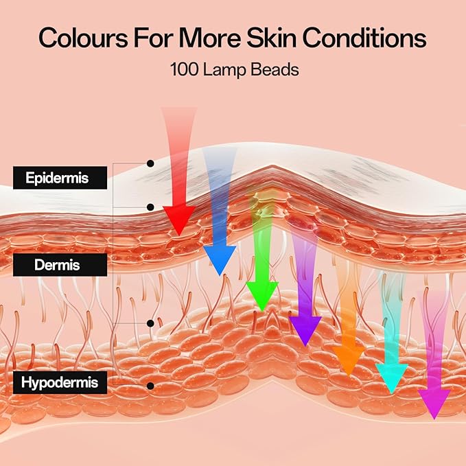 - 309 Professional Light Beads: Dual-zone treatment with 210 face and 99 neck lights ensures even coverage. Smart wavelength technology stimulates collagen production for refined skin texture.