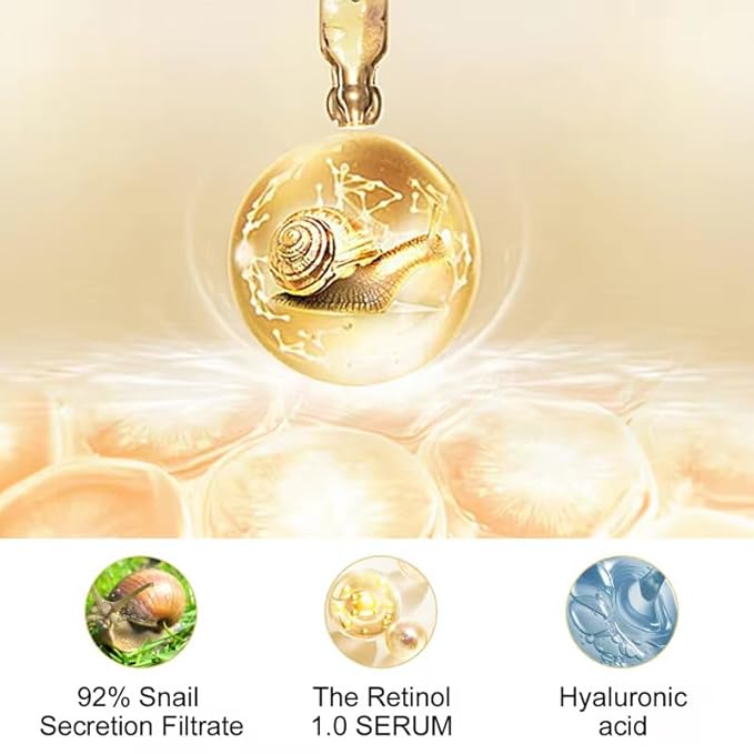 The LANEMY Retinol Serum & Snail Mucin Cream Skin Care Set, Daily Glow & Brighten, Fine Lines & Crow's Feet Treatment, Day and Night Care