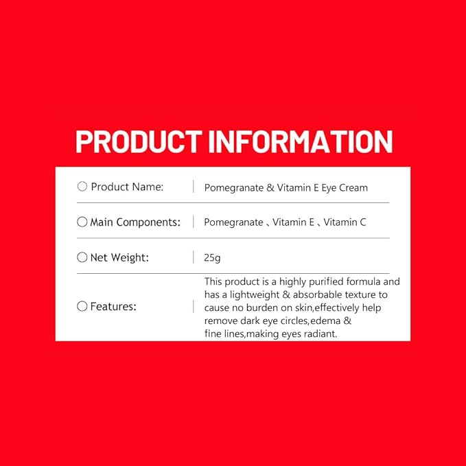 Pomegranate Vitamin E Eye Cream Anti-Aging Firming Anti-Wrinkle Under Eye Skin 20g / 0.85fl.oz