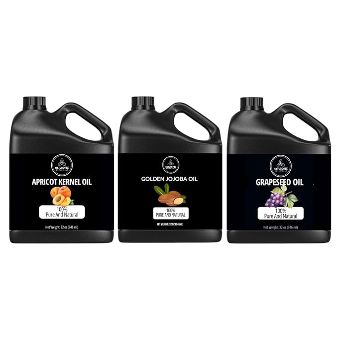 Naturevibe Botanicals Apricot Oil 32oz Golden Jojoba Oil 32oz and Grapeseed oil 32oz | Oil Combo