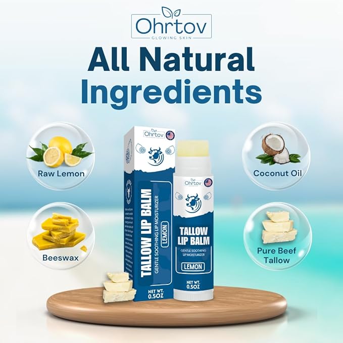 - INTENSELY HYDRATING FORMULA: Immerse your lips in moisture with our grass-fed organic beef tallow lip balm with lemon flavor. Crafted with natural fats, akin to those in human skin, it maintains your lips' moisture barrier for enduring hydration and velvety softness.