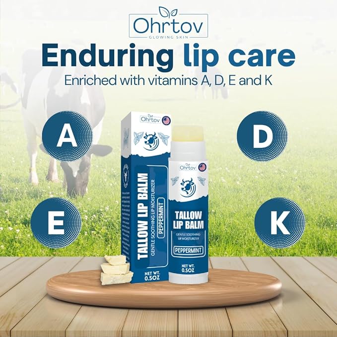 - INTENSELY HYDRATING FORMULA: Immerse your lips in moisture with our grass-fed organic beef tallow lip balm with peppermint flavor. Crafted with natural fats, akin to those in human skin, it maintains your lips' moisture barrier for enduring hydration and velvety softness.