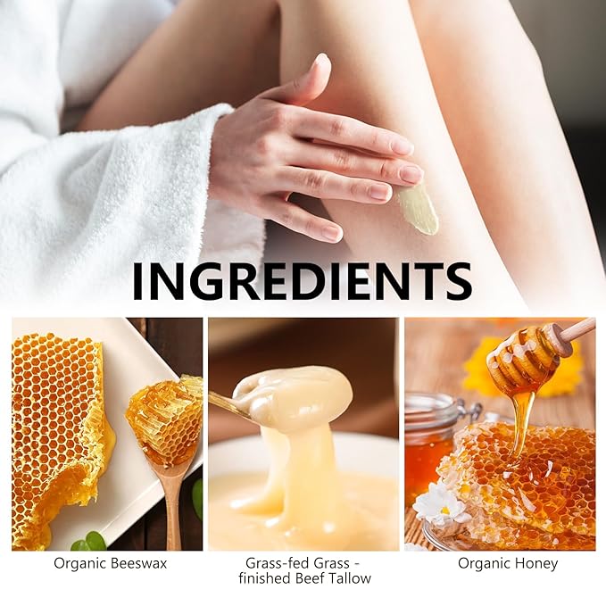 - Natural Ingredients:Our Beef Tallow Honey Balm is crafted with premium grass-fed tallow and pure honey, without artificial additives and cruelty-free ingredients, bringing natural care to your skin.