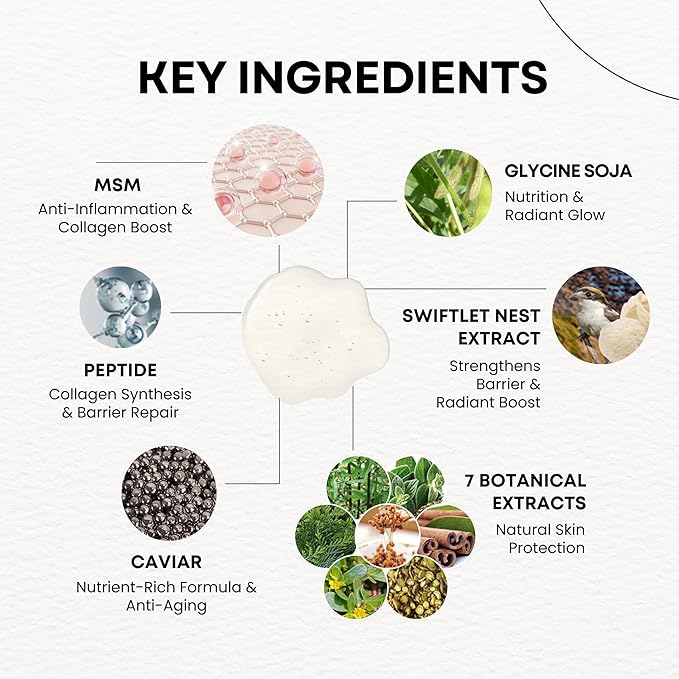 - Restore Natural Glow and Radiance : Packed with marine-derived proteins and amino acids, this serum delivers powerful nourishment to restore your skin’s natural glow. It replenishes dull, dehydrated skin, creating a luminous and vibrant complexion. The swiftlet nest extract works to boost vitality while smoothing out rough textures. Achieve glass-like, radiant skin with every application, perfect for a naturally flawless look.