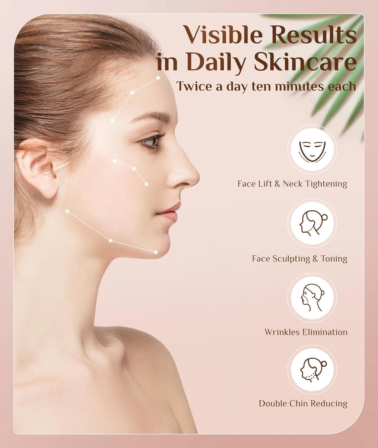 7 Color Galvanic Machines - Red Light Therapy for Face and Neck, Face Massager Tool for Wrinkles, Double Chin, Vibrating Facial Massager with Thermals, Pink